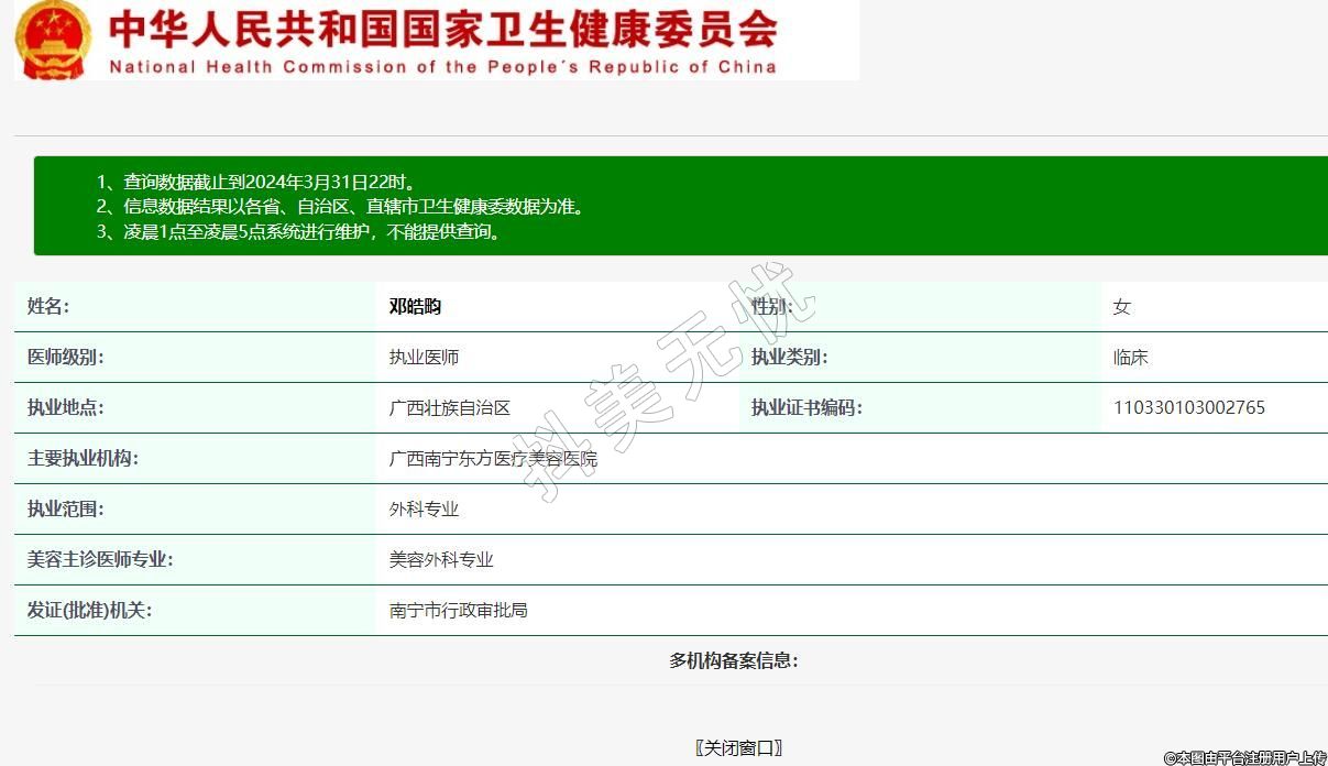 主要執(zhí)業(yè)機(jī)構(gòu):廣西南寧東方醫(yī)療美容醫(yī)院