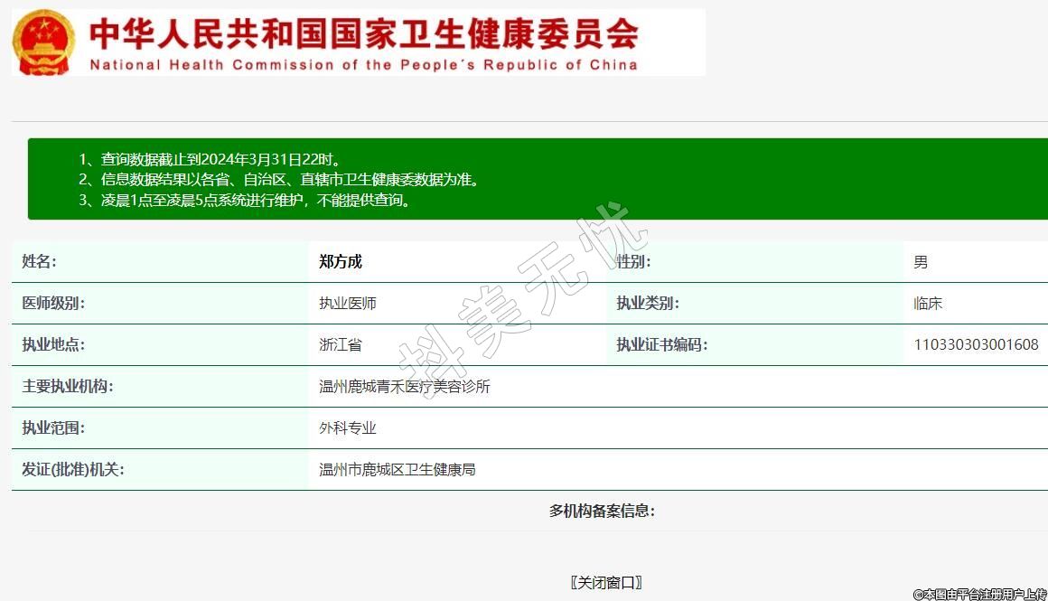 主要執(zhí)業(yè)機(jī)構(gòu):溫州鹿城青禾醫(yī)療美容診所