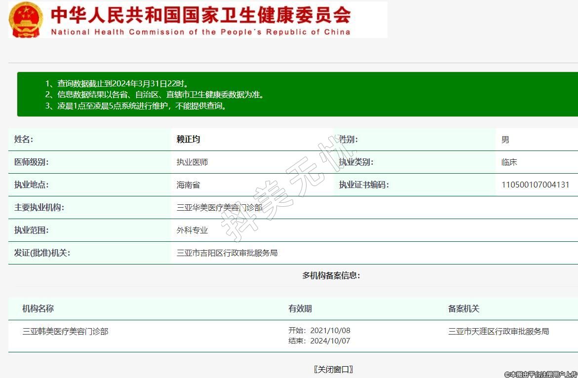 主要執(zhí)業(yè)機構:三亞華美醫(yī)療美容門診部
