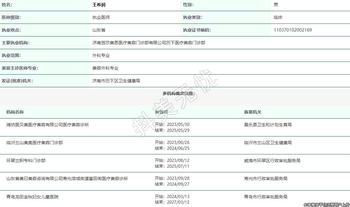 主要執(zhí)業(yè)機(jī)構(gòu):濟(jì)南芭莎美恩醫(yī)療美容門診部有限公司歷下醫(yī)療美容門診部