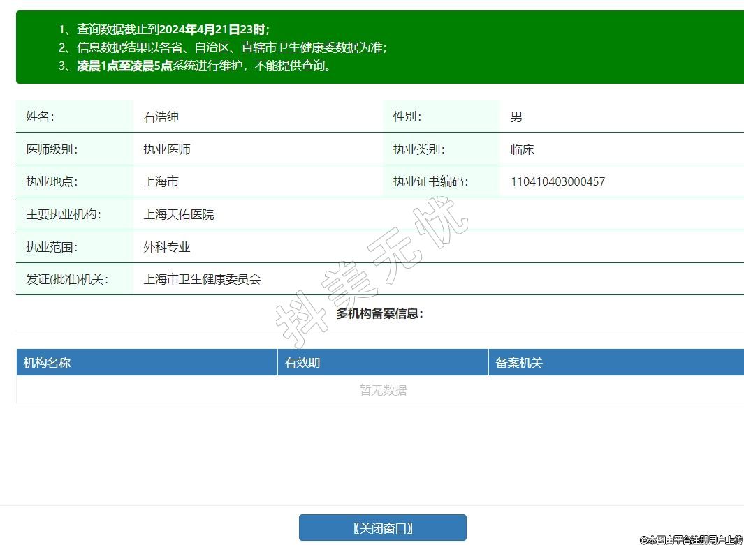 主要執(zhí)業(yè)機(jī)構(gòu):上海天佑醫(yī)院