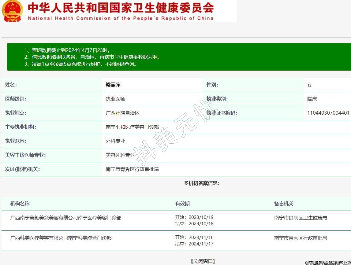 機構(gòu)名稱:廣西韓美醫(yī)療美容有限公司南寧韓美綜合門診部