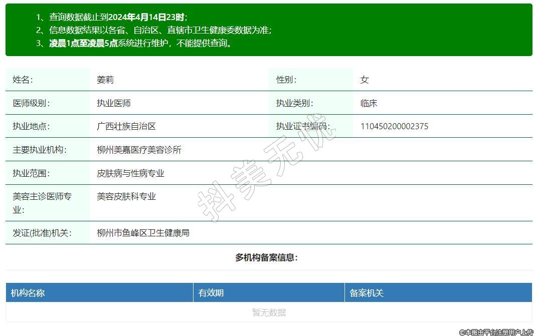 主要執(zhí)業(yè)機構(gòu):柳州美嘉醫(yī)療美容診所