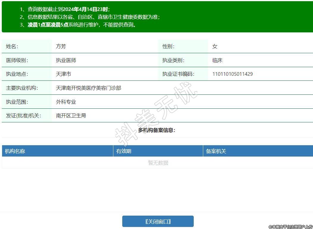 主要執(zhí)業(yè)機構(gòu):天津南開悅美醫(yī)療美容門診部