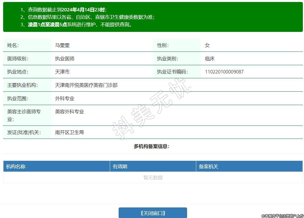 主要執(zhí)業(yè)機(jī)構(gòu):天津南開悅美醫(yī)療美容門診部