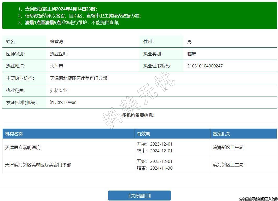 主要執(zhí)業(yè)機(jī)構(gòu):天津河北健麗醫(yī)療美容門診部