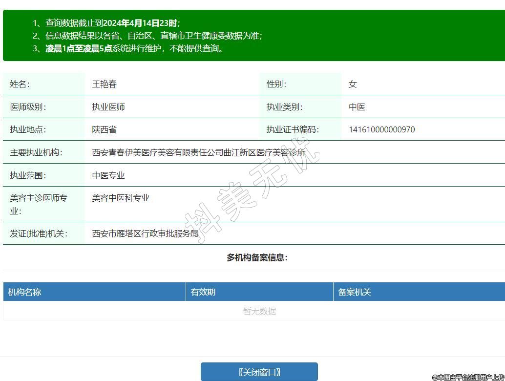 主要執(zhí)業(yè)機(jī)構(gòu):西安青春伊美醫(yī)療美容有限責(zé)任公司曲江新區(qū)醫(yī)療美容診所