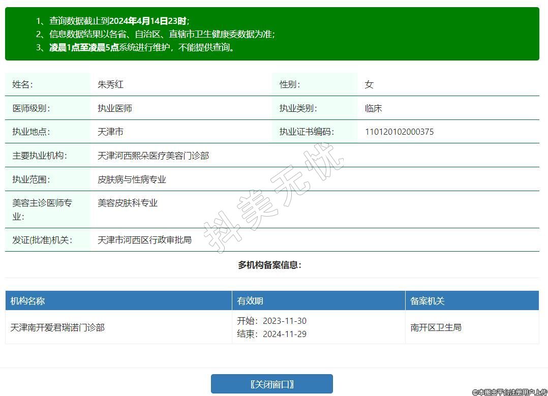 主要執(zhí)業(yè)機構(gòu):天津河西熙朵醫(yī)療美容門診部