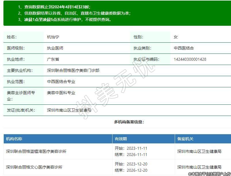主要執(zhí)業(yè)機構(gòu):深圳聯(lián)合麗格醫(yī)療美容門診部