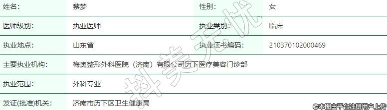 主要執(zhí)業(yè)機(jī)構(gòu):梅奧整形外科醫(yī)院(濟(jì)南)有限公司歷下醫(yī)療美容門診部