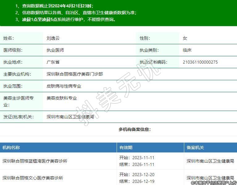 主要執(zhí)業(yè)機(jī)構(gòu):深圳聯(lián)合麗格醫(yī)療美容門(mén)診部