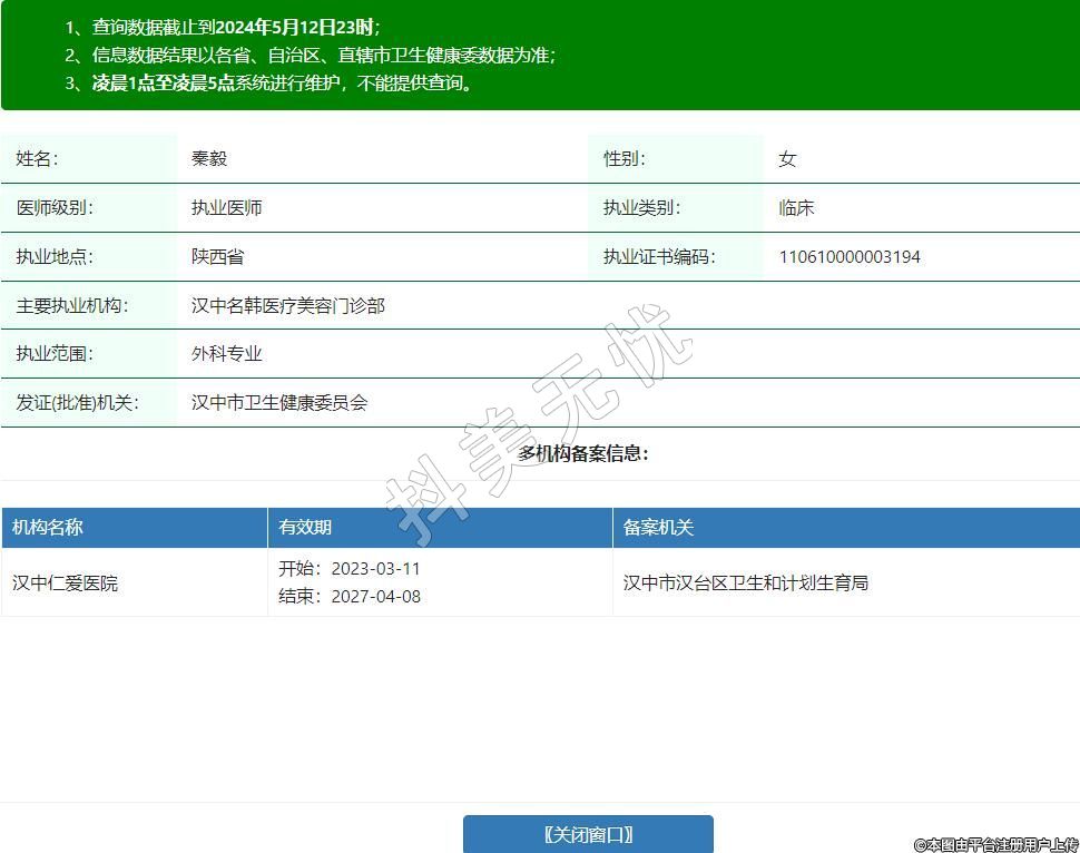 主要執(zhí)業(yè)機構(gòu):漢中名韓醫(yī)療美容門診部