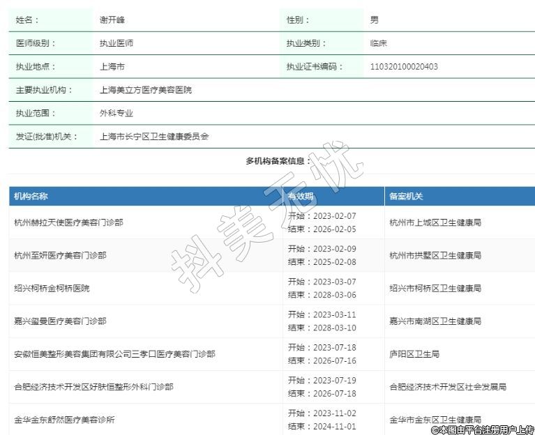 上海美立方醫(yī)療美容執(zhí)業(yè)醫(yī)師