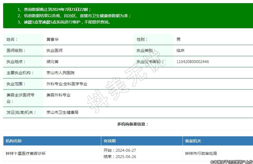 京山市人民醫(yī)院整形美容執(zhí)業(yè)醫(yī)師
