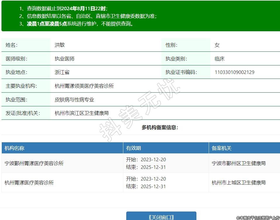 主要執(zhí)業(yè)機構:杭州菁漾領美醫(yī)療美容診所