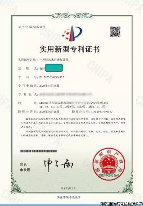 創(chuàng)研1項(xiàng)眼部國(guó)家實(shí)用新型專利技術(shù)