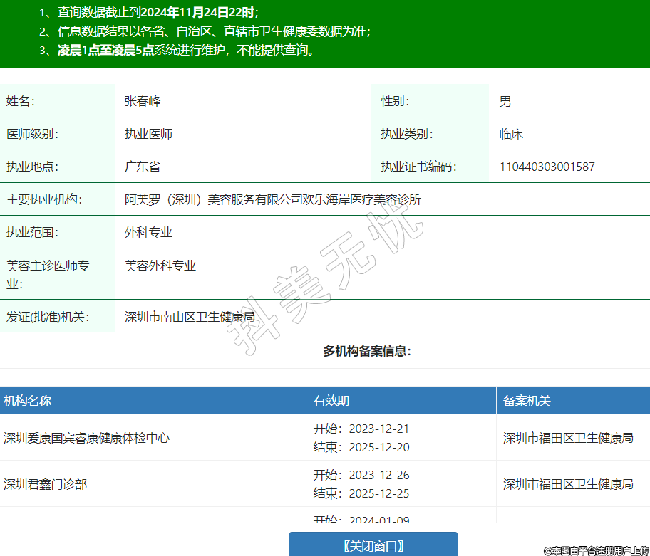主要執(zhí)業(yè)機(jī)構(gòu):阿芙羅(深圳)美容服務(wù)有限公司歡樂(lè)海岸醫(yī)療美容診所