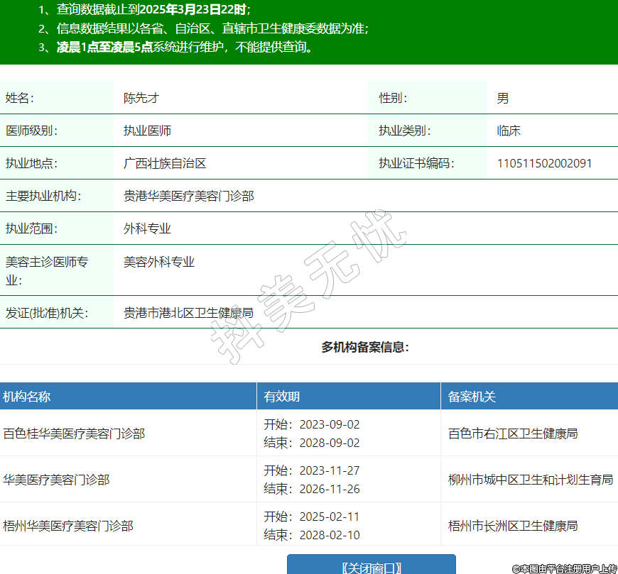 主要執(zhí)業(yè)機(jī)構(gòu):貴港華美醫(yī)療美容門(mén)診部
