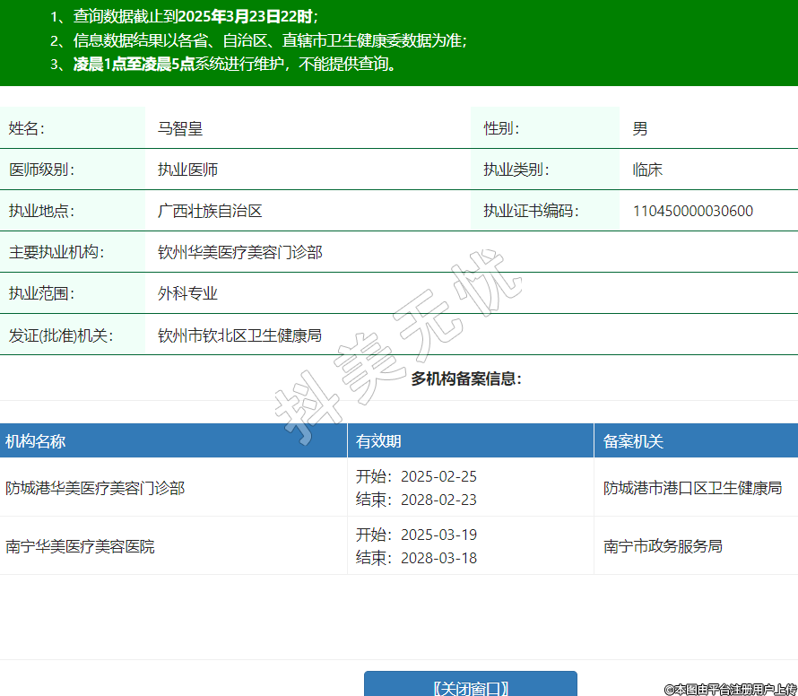 主要執(zhí)業(yè)機(jī)構(gòu):欽州華美醫(yī)療美容門診部