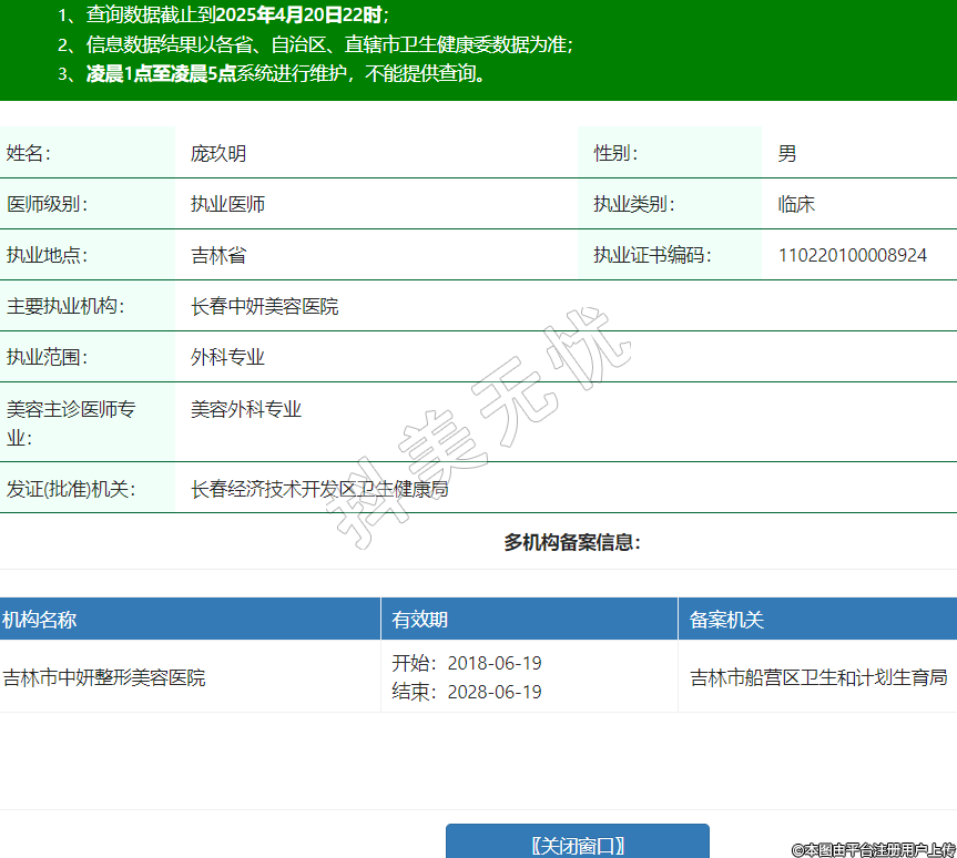 姓名:龐玖明性別:男醫(yī)師級別:執(zhí)業(yè)醫(yī)師執(zhí)業(yè)類別:臨床執(zhí)業(yè)地點:吉林省執(zhí)業(yè)證書編碼:110220100008924主要執(zhí)業(yè)機構(gòu):長春中妍美容醫(yī)院執(zhí)業(yè)范圍:外科專業(yè)美容主診醫(yī)師專業(yè):美容外科專業(yè)發(fā)證(批準)機關(guān):長春經(jīng)濟技術(shù)開發(fā)區(qū)衛(wèi)生健康局多機構(gòu)備案信息:機構(gòu)名稱 有效期 備案機關(guān) 吉林市中妍整形美容醫(yī)院 開始:2018-06-19結(jié)束:2028-06-19吉林市船營區(qū)衛(wèi)生和計劃生育局 -