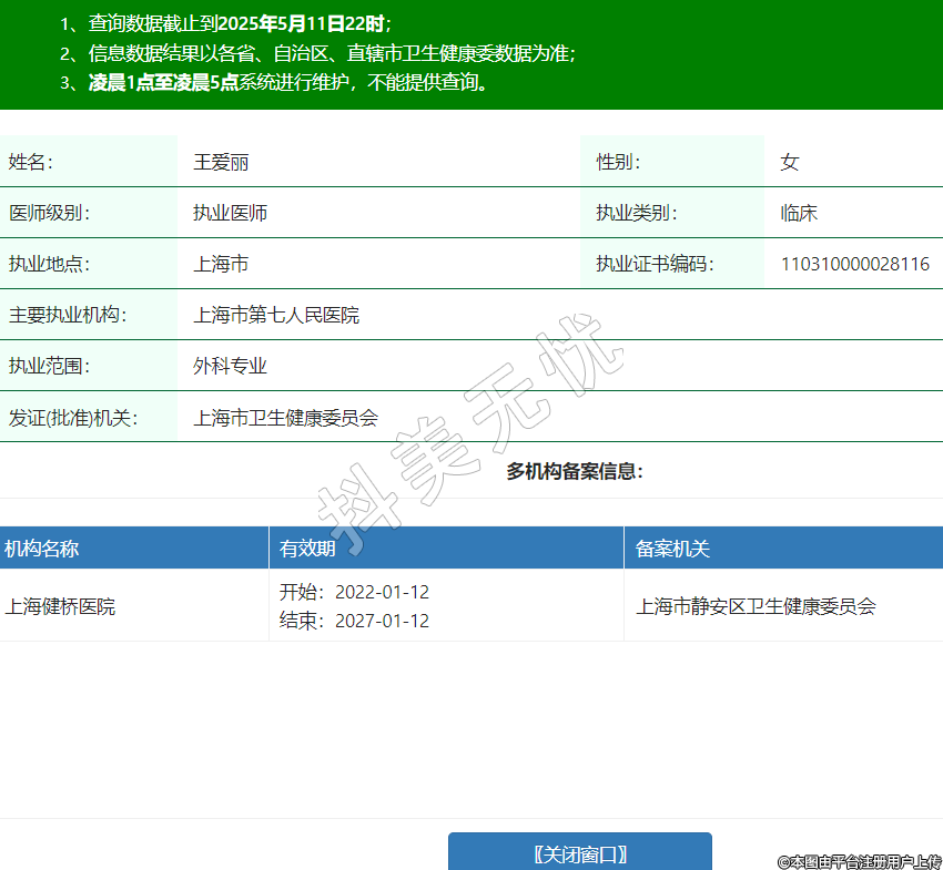 姓名:王愛麗性別:女醫(yī)師級別:執(zhí)業(yè)醫(yī)師執(zhí)業(yè)類別:臨床執(zhí)業(yè)地點:上海市執(zhí)業(yè)證書編碼:110310000028116主要執(zhí)業(yè)機構(gòu):上海市第七人民醫(yī)院執(zhí)業(yè)范圍:外科專業(yè)發(fā)證(批準)機關(guān):上海市衛(wèi)生健康委員會多機構(gòu)備案信息:機構(gòu)名稱 有效期 備案機關(guān) 上海健橋醫(yī)院 開始:2022-01-12結(jié)束:2027-01-12上海市靜安區(qū)衛(wèi)生健康委員會 -
