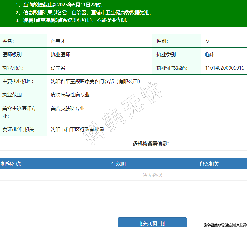 姓名:孫寶才性別:女醫(yī)師級別:執(zhí)業(yè)醫(yī)師執(zhí)業(yè)類別:臨床執(zhí)業(yè)地點(diǎn):遼寧省執(zhí)業(yè)證書編碼:110140200006916主要執(zhí)業(yè)機(jī)構(gòu):沈陽和平童顏醫(yī)療美容門診部(有限公司)執(zhí)業(yè)范圍:皮膚病與性病專業(yè)美容主診醫(yī)師專業(yè):美容皮膚科專業(yè)發(fā)證(批準(zhǔn))機(jī)關(guān):沈陽市和平區(qū)行政審批局 -