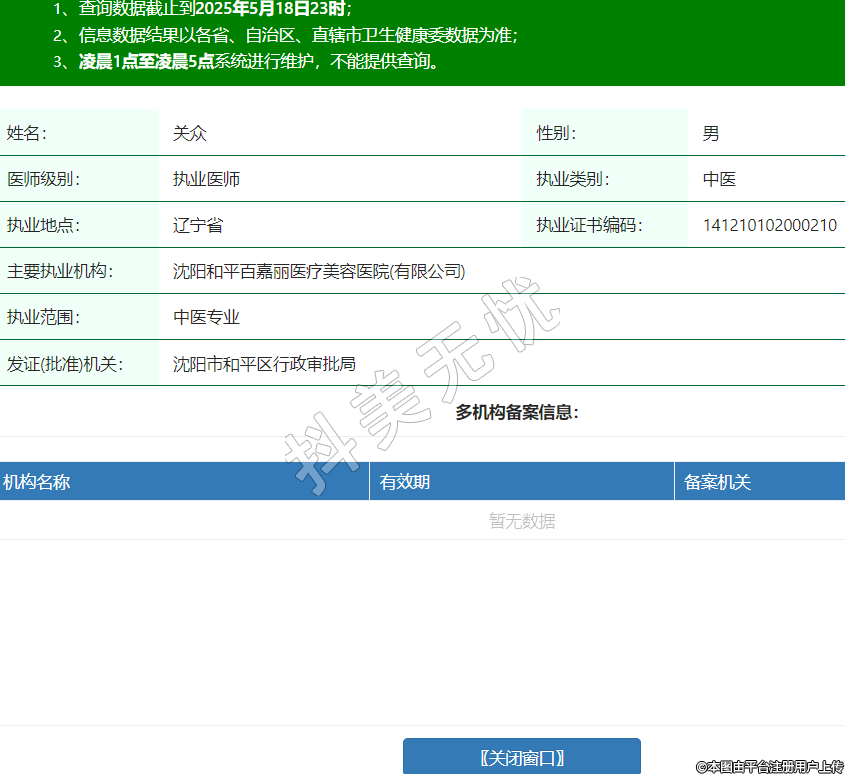 姓名:關(guān)眾性別:男醫(yī)師級別:執(zhí)業(yè)醫(yī)師執(zhí)業(yè)類別:中醫(yī)執(zhí)業(yè)地點(diǎn):遼寧省執(zhí)業(yè)證書編碼:141210102000210主要執(zhí)業(yè)機(jī)構(gòu):沈陽和平百嘉麗醫(yī)療美容醫(yī)院(有限公司)執(zhí)業(yè)范圍:中醫(yī)專業(yè)發(fā)證(批準(zhǔn))機(jī)關(guān):沈陽市和平區(qū)行政審批局 -