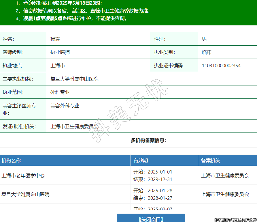 姓名:楊震性別:男醫(yī)師級(jí)別:執(zhí)業(yè)醫(yī)師執(zhí)業(yè)類(lèi)別:臨床執(zhí)業(yè)地點(diǎn):上海市執(zhí)業(yè)證書(shū)編碼:110310000002354主要執(zhí)業(yè)機(jī)構(gòu):復(fù)旦大學(xué)附屬中山醫(yī)院執(zhí)業(yè)范圍:外科專(zhuān)業(yè)美容主診醫(yī)師專(zhuān)業(yè):美容外科專(zhuān)業(yè)發(fā)證(批準(zhǔn))機(jī)關(guān):上海市衛(wèi)生健康委員會(huì)多機(jī)構(gòu)備案信息:機(jī)構(gòu)名稱(chēng) 有效期 備案機(jī)關(guān) 上海市老年醫(yī)學(xué)中心 開(kāi)始:2025-01-01結(jié)束:2029-12-31上海市衛(wèi)生健康委員會(huì) 復(fù)旦大學(xué)附屬金山醫(yī)院 開(kāi)始:2025-01-28結(jié)束:2028-01-27上海市衛(wèi)生健康委員會(huì) 上海市金山區(qū)山陽(yáng)鎮(zhèn)社區(qū)衛(wèi)生服務(wù)中心 開(kāi)始:2025-02-07結(jié)束:2028-02-06上海市金山區(qū)衛(wèi)生健康委員會(huì) -