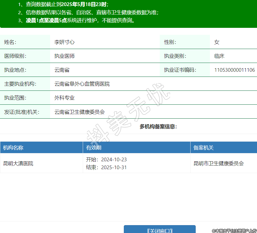 姓名:李妍寸心性別:女醫(yī)師級(jí)別:執(zhí)業(yè)醫(yī)師執(zhí)業(yè)類別:臨床執(zhí)業(yè)地點(diǎn):云南省執(zhí)業(yè)證書(shū)編碼:110530000011106主要執(zhí)業(yè)機(jī)構(gòu):云南省阜外心血管病醫(yī)院執(zhí)業(yè)范圍:外科專業(yè)發(fā)證(批準(zhǔn))機(jī)關(guān):云南省衛(wèi)生健康委員會(huì)多機(jī)構(gòu)備案信息:機(jī)構(gòu)名稱 有效期 備案機(jī)關(guān) 昆明大滇醫(yī)院 開(kāi)始:2024-10-23結(jié)束:2025-10-31昆明市衛(wèi)生健康委員會(huì) -