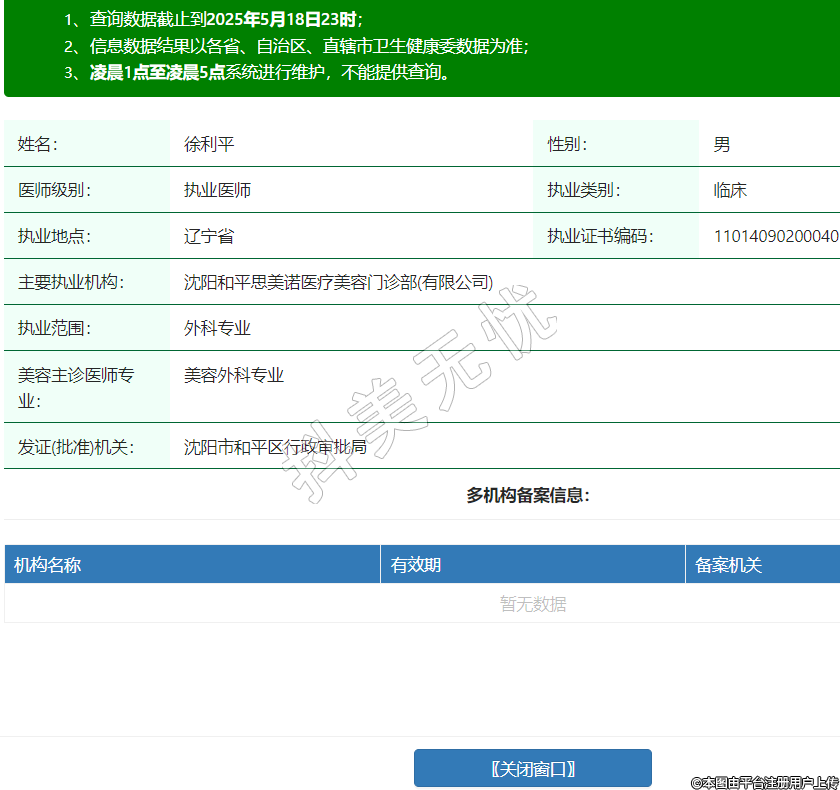 姓名:徐利平性別:男醫(yī)師級(jí)別:執(zhí)業(yè)醫(yī)師執(zhí)業(yè)類別:臨床執(zhí)業(yè)地點(diǎn):遼寧省執(zhí)業(yè)證書編碼:110140902000401主要執(zhí)業(yè)機(jī)構(gòu):沈陽(yáng)和平思美諾醫(yī)療美容門診部(有限公司)執(zhí)業(yè)范圍:外科專業(yè)美容主診醫(yī)師專業(yè):美容外科專業(yè)發(fā)證(批準(zhǔn))機(jī)關(guān):沈陽(yáng)市和平區(qū)行政審批局 -