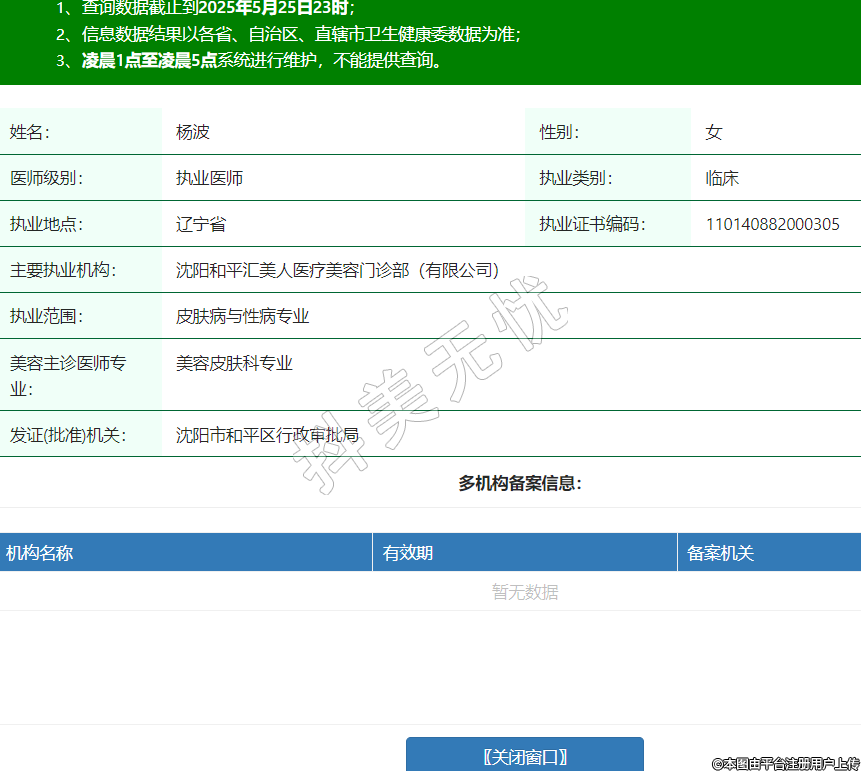 姓名:楊波性別:女醫(yī)師級別:執(zhí)業(yè)醫(yī)師執(zhí)業(yè)類別:臨床執(zhí)業(yè)地點:遼寧省執(zhí)業(yè)證書編碼:110140882000305主要執(zhí)業(yè)機構(gòu):沈陽和平匯美人醫(yī)療美容門診部(有限公司)執(zhí)業(yè)范圍:皮膚病與性病專業(yè)美容主診醫(yī)師專業(yè):美容皮膚科專業(yè)發(fā)證(批準(zhǔn))機關(guān):沈陽市和平區(qū)行政審批局 -