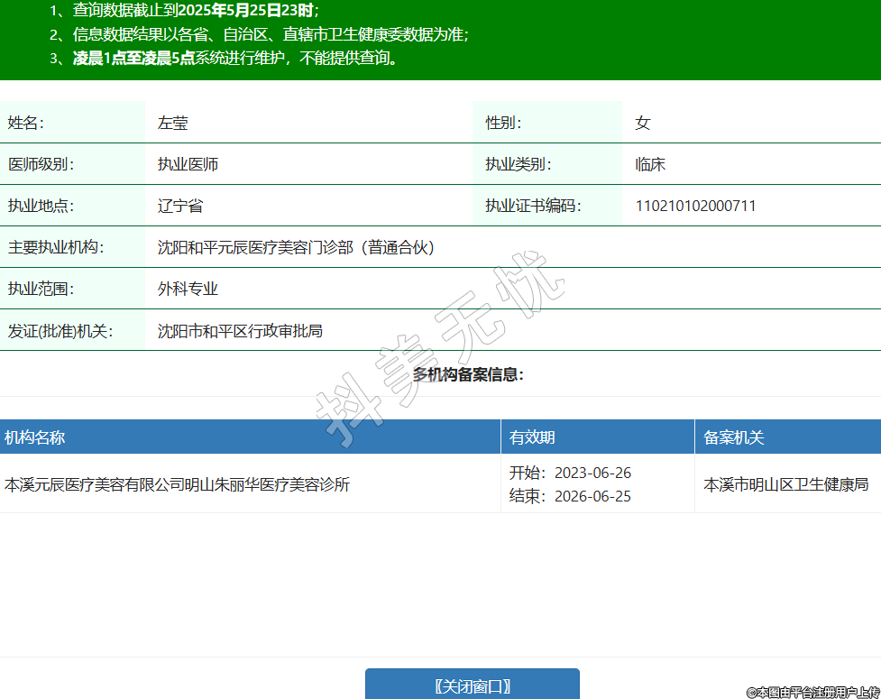 姓名:左瑩性別:女醫(yī)師級別:執(zhí)業(yè)醫(yī)師執(zhí)業(yè)類別:臨床執(zhí)業(yè)地點:遼寧省執(zhí)業(yè)證書編碼:110210102000711主要執(zhí)業(yè)機構:沈陽和平元辰醫(yī)療美容門診部(普通合伙)執(zhí)業(yè)范圍:外科專業(yè)發(fā)證(批準)機關:沈陽市和平區(qū)行政審批局多機構備案信息:機構名稱 有效期 備案機關 本溪元辰醫(yī)療美容有限公司明山朱麗華醫(yī)療美容診所 開始:2023-06-26結束:2026-06-25本溪市明山區(qū)衛(wèi)生健康局 -