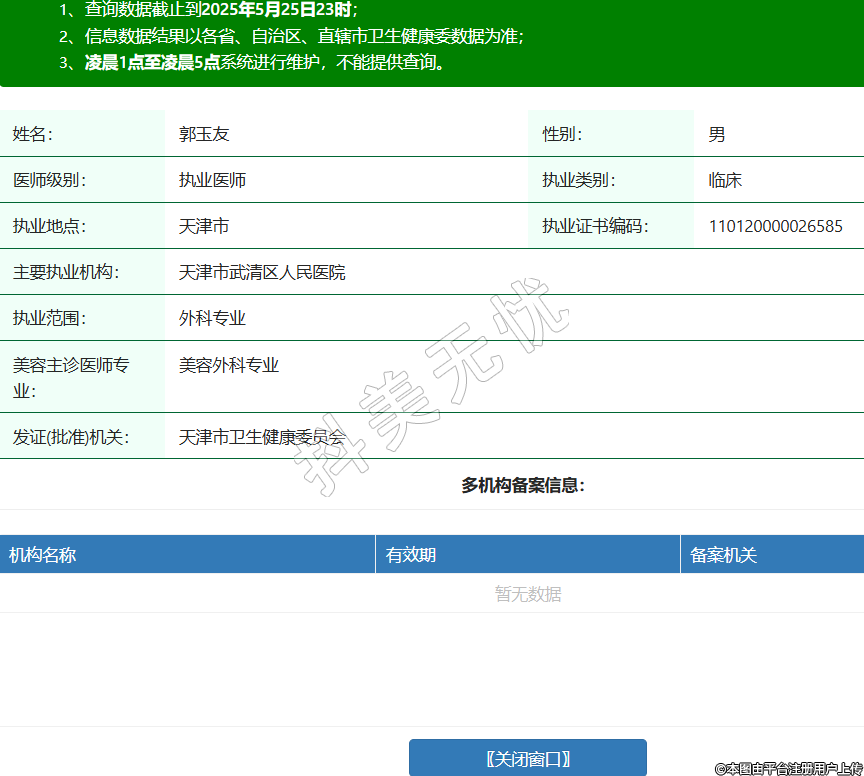 姓名:郭玉友性別:男醫(yī)師級(jí)別:執(zhí)業(yè)醫(yī)師執(zhí)業(yè)類別:臨床執(zhí)業(yè)地點(diǎn):天津市執(zhí)業(yè)證書編碼:110120000026585主要執(zhí)業(yè)機(jī)構(gòu):天津市武清區(qū)人民醫(yī)院執(zhí)業(yè)范圍:外科專業(yè)美容主診醫(yī)師專業(yè):美容外科專業(yè)發(fā)證(批準(zhǔn))機(jī)關(guān):天津市衛(wèi)生健康委員會(huì) -