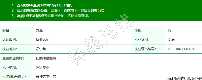 姓名:趙蕊性別:女醫(yī)師級別:執(zhí)業(yè)醫(yī)師執(zhí)業(yè)類別:臨床執(zhí)業(yè)地點:遼寧省執(zhí)業(yè)證書編碼:210210400000520主要執(zhí)業(yè)機(jī)構(gòu):撫順博愛醫(yī)院執(zhí)業(yè)范圍:外科專業(yè)發(fā)證(批準(zhǔn))機(jī)關(guān):新?lián)釁^(qū)衛(wèi)生局 -