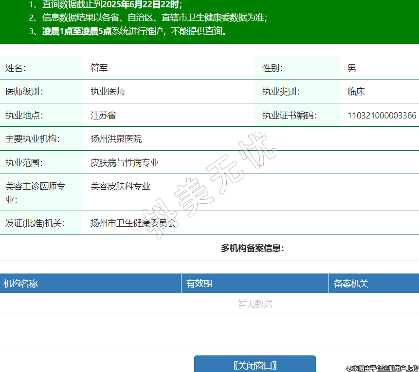 姓名:符軍性別:男醫(yī)師級(jí)別:執(zhí)業(yè)醫(yī)師執(zhí)業(yè)類別:臨床執(zhí)業(yè)地點(diǎn):江蘇省執(zhí)業(yè)證書編碼:110321000003366主要執(zhí)業(yè)機(jī)構(gòu):揚(yáng)州洪泉醫(yī)院執(zhí)業(yè)范圍:皮膚病與性病專業(yè)美容主診醫(yī)師專業(yè):美容皮膚科專業(yè)發(fā)證(批準(zhǔn))機(jī)關(guān):揚(yáng)州市衛(wèi)生健康委員會(huì) -
