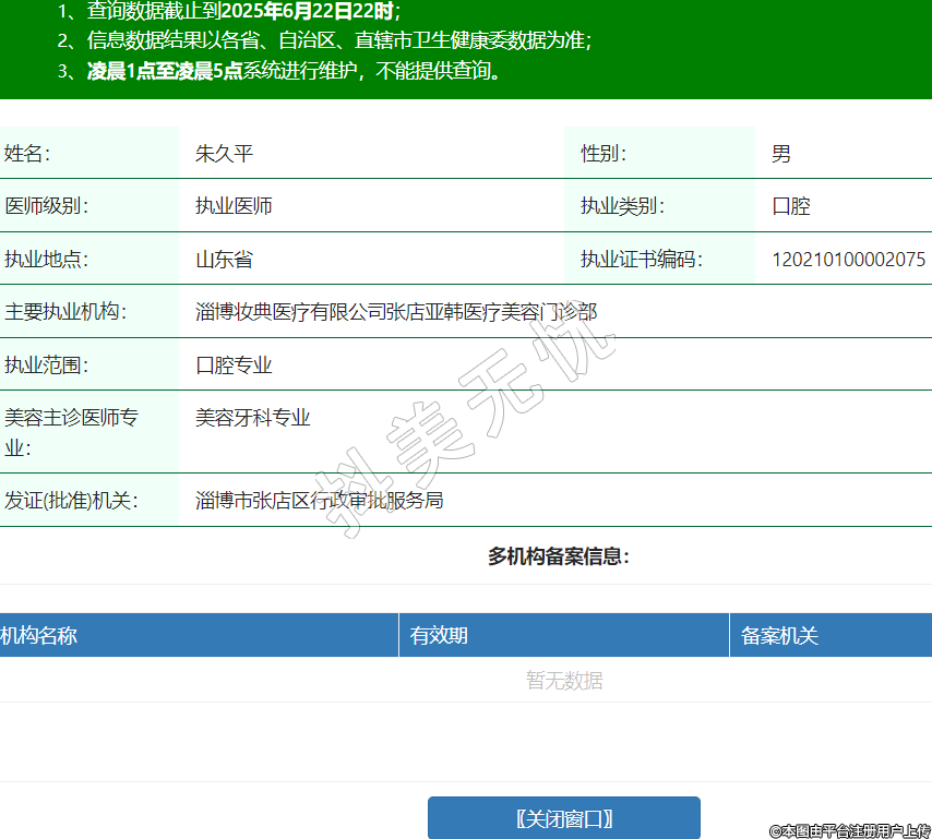姓名:朱久平性別:男醫(yī)師級別:執(zhí)業(yè)醫(yī)師執(zhí)業(yè)類別:口腔執(zhí)業(yè)地點:山東省執(zhí)業(yè)證書編碼:120210100002075主要執(zhí)業(yè)機構:淄博妝典醫(yī)療有限公司張店亞韓醫(yī)療美容門診部執(zhí)業(yè)范圍:口腔專業(yè)美容主診醫(yī)師專業(yè):美容牙科專業(yè)發(fā)證(批準)機關:淄博市張店區(qū)行政審批服務局 -