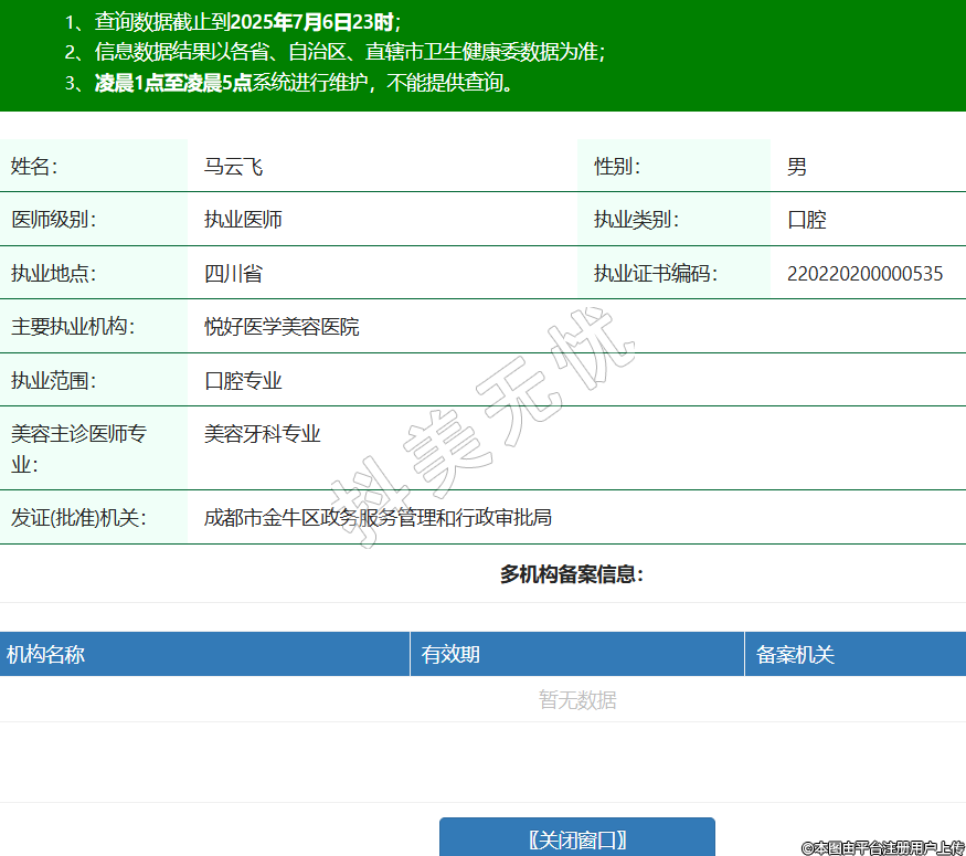 姓名:馬云飛性別:男醫(yī)師級(jí)別:執(zhí)業(yè)醫(yī)師執(zhí)業(yè)類別:口腔執(zhí)業(yè)地點(diǎn):四川省執(zhí)業(yè)證書編碼:220220200000535主要執(zhí)業(yè)機(jī)構(gòu):悅好醫(yī)學(xué)美容醫(yī)院執(zhí)業(yè)范圍:口腔專業(yè)美容主診醫(yī)師專業(yè):美容牙科專業(yè)發(fā)證(批準(zhǔn))機(jī)關(guān):成都市金牛區(qū)政務(wù)服務(wù)管理和行政審批局 -