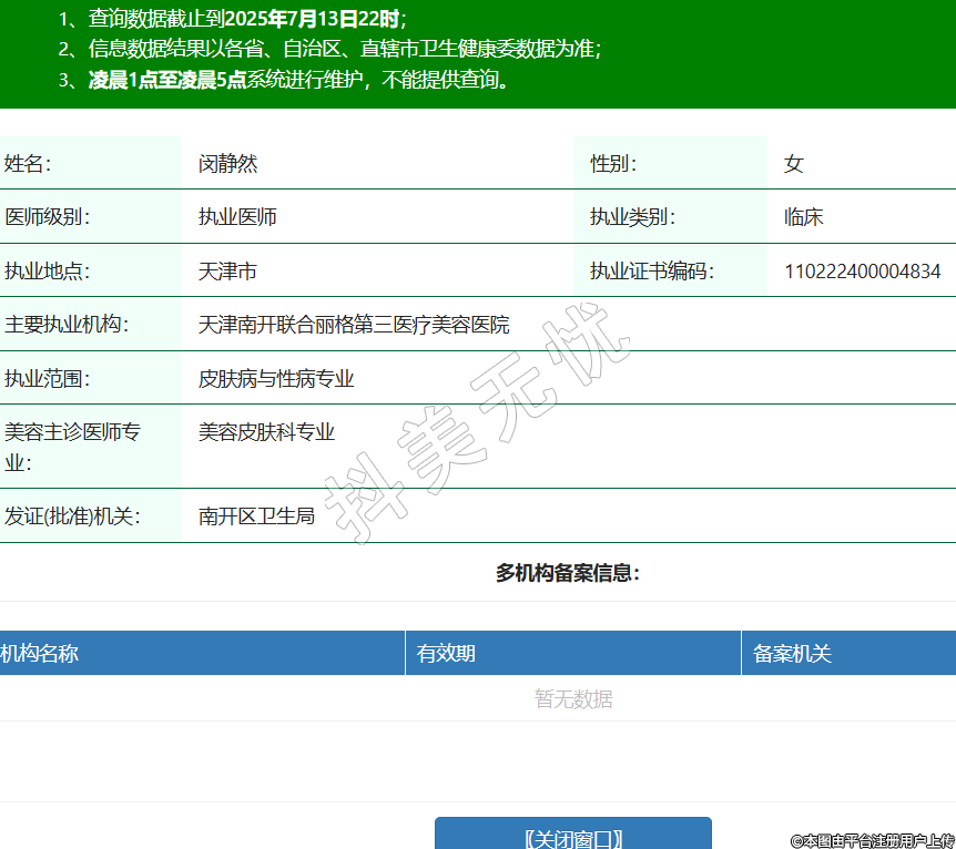 姓名:閔靜然性別:女醫(yī)師級別:執(zhí)業(yè)醫(yī)師執(zhí)業(yè)類別:臨床執(zhí)業(yè)地點(diǎn):天津市執(zhí)業(yè)證書編碼:110222400004834主要執(zhí)業(yè)機(jī)構(gòu):天津南開聯(lián)合麗格第三醫(yī)療美容醫(yī)院執(zhí)業(yè)范圍:皮膚病與性病專業(yè)美容主診醫(yī)師專業(yè):美容皮膚科專業(yè)發(fā)證(批準(zhǔn))機(jī)關(guān):南開區(qū)衛(wèi)生局 -