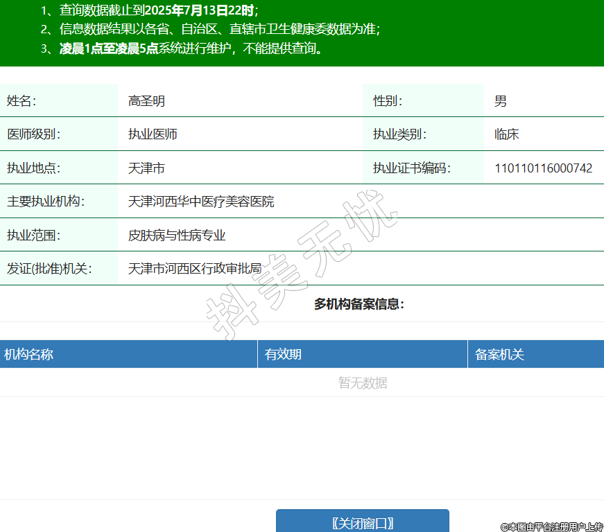 姓名:高圣明性別:男醫(yī)師級別:執(zhí)業(yè)醫(yī)師執(zhí)業(yè)類別:臨床執(zhí)業(yè)地點:天津市執(zhí)業(yè)證書編碼:110110116000742主要執(zhí)業(yè)機構(gòu):天津河西華中醫(yī)療美容醫(yī)院執(zhí)業(yè)范圍:皮膚病與性病專業(yè)發(fā)證(批準(zhǔn))機關(guān):天津市河西區(qū)行政審批局 -