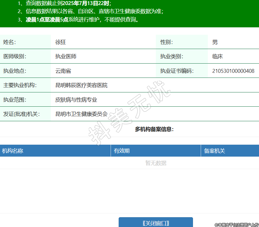 姓名:徐狂性別:男醫(yī)師級別:執(zhí)業(yè)醫(yī)師執(zhí)業(yè)類別:臨床執(zhí)業(yè)地點:云南省執(zhí)業(yè)證書編碼:210530100000408主要執(zhí)業(yè)機構(gòu):昆明韓辰醫(yī)療美容醫(yī)院執(zhí)業(yè)范圍:皮膚病與性病專業(yè)發(fā)證(批準)機關(guān):昆明市衛(wèi)生健康委員會 -