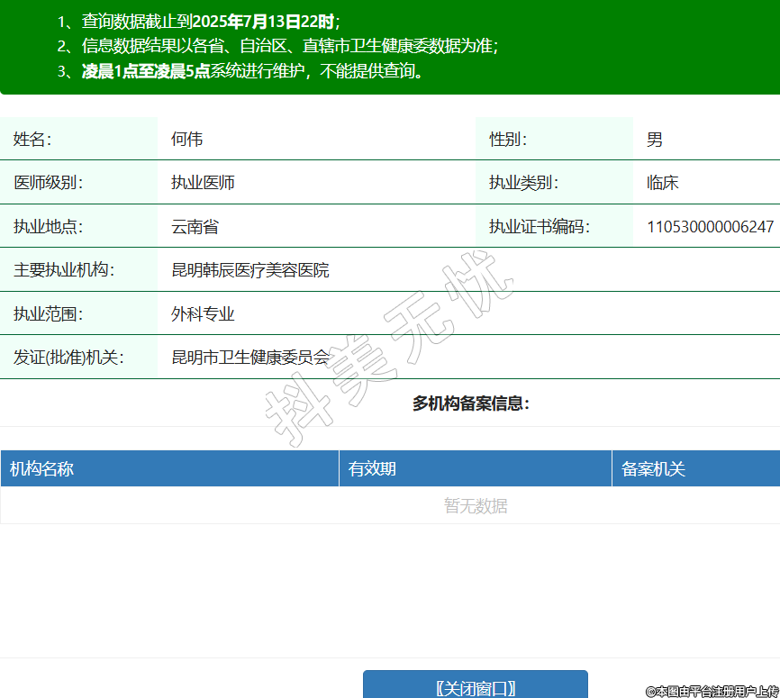 姓名:何偉性別:男醫(yī)師級(jí)別:執(zhí)業(yè)醫(yī)師執(zhí)業(yè)類別:臨床執(zhí)業(yè)地點(diǎn):云南省執(zhí)業(yè)證書(shū)編碼:110530000006247主要執(zhí)業(yè)機(jī)構(gòu):昆明韓辰醫(yī)療美容醫(yī)院執(zhí)業(yè)范圍:外科專業(yè)發(fā)證(批準(zhǔn))機(jī)關(guān):昆明市衛(wèi)生健康委員會(huì) -
