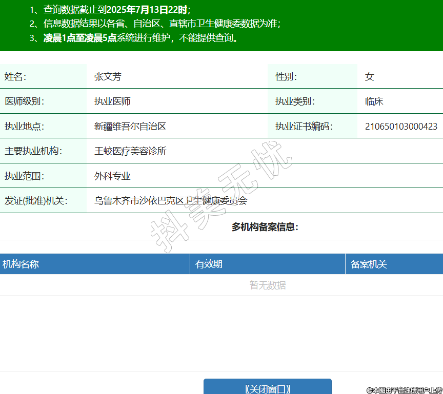 姓名:張文芳性別:女醫(yī)師級別:執(zhí)業(yè)醫(yī)師執(zhí)業(yè)類別:臨床執(zhí)業(yè)地點:新疆維吾爾自治區(qū)執(zhí)業(yè)證書編碼:210650103000423主要執(zhí)業(yè)機構:王蛟醫(yī)療美容診所執(zhí)業(yè)范圍:外科專業(yè)發(fā)證(批準)機關:烏魯木齊市沙依巴克區(qū)衛(wèi)生健康委員會 -