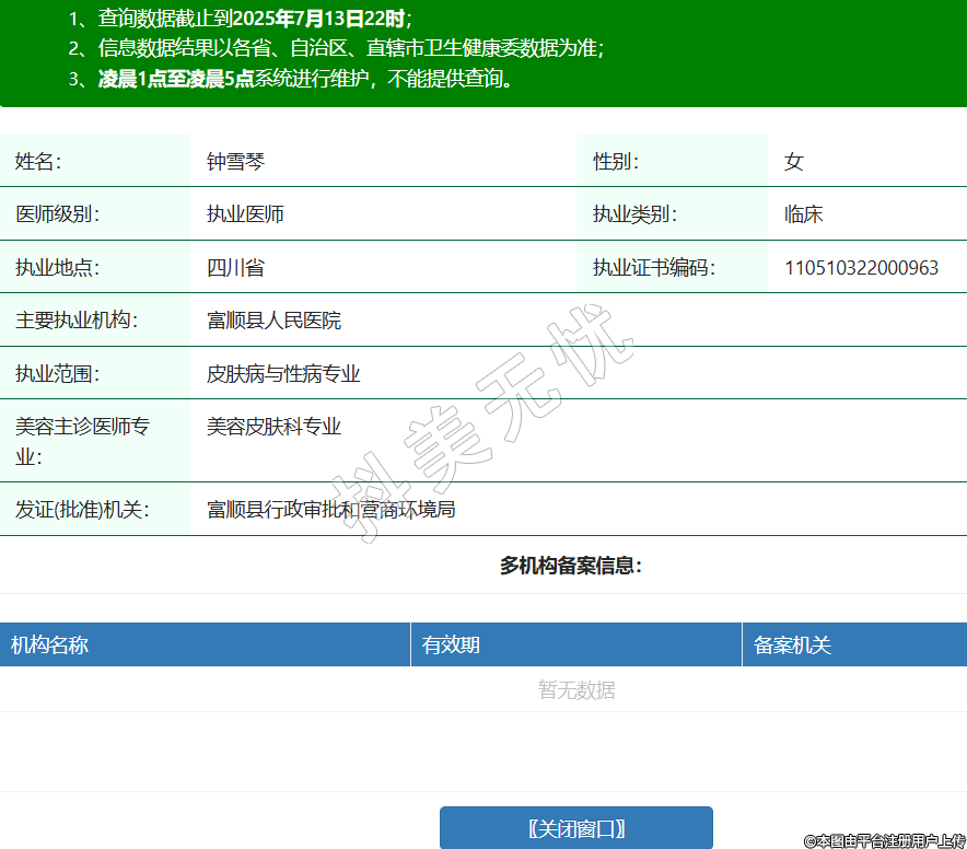 姓名:鐘雪琴性別:女醫(yī)師級(jí)別:執(zhí)業(yè)醫(yī)師執(zhí)業(yè)類別:臨床執(zhí)業(yè)地點(diǎn):四川省執(zhí)業(yè)證書編碼:110510322000963主要執(zhí)業(yè)機(jī)構(gòu):富順縣人民醫(yī)院執(zhí)業(yè)范圍:皮膚病與性病專業(yè)美容主診醫(yī)師專業(yè):美容皮膚科專業(yè)發(fā)證(批準(zhǔn))機(jī)關(guān):富順縣行政審批和營商環(huán)境局 -