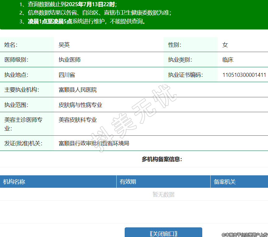 姓名:吳英性別:女醫(yī)師級(jí)別:執(zhí)業(yè)醫(yī)師執(zhí)業(yè)類別:臨床執(zhí)業(yè)地點(diǎn):四川省執(zhí)業(yè)證書編碼:110510300001411主要執(zhí)業(yè)機(jī)構(gòu):富順縣人民醫(yī)院執(zhí)業(yè)范圍:皮膚病與性病專業(yè)美容主診醫(yī)師專業(yè):美容皮膚科專業(yè)發(fā)證(批準(zhǔn))機(jī)關(guān):富順縣行政審批和營(yíng)商環(huán)境局 -
