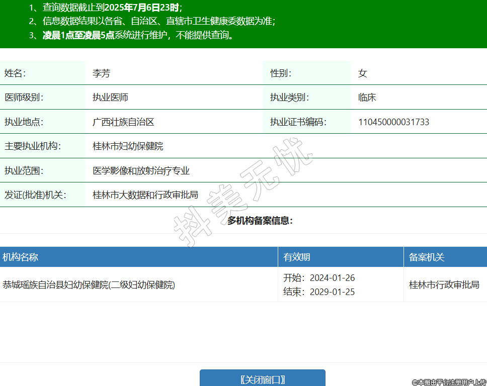 姓名:李芳性別:女醫(yī)師級別:執(zhí)業(yè)醫(yī)師執(zhí)業(yè)類別:臨床執(zhí)業(yè)地點(diǎn):廣西壯族自治區(qū)執(zhí)業(yè)證書編碼:110450000031733主要執(zhí)業(yè)機(jī)構(gòu):桂林市婦幼保健院執(zhí)業(yè)范圍:醫(yī)學(xué)影像和放射治療專業(yè)發(fā)證(批準(zhǔn))機(jī)關(guān):桂林市大數(shù)據(jù)和行政審批局多機(jī)構(gòu)備案信息:機(jī)構(gòu)名稱 有效期 備案機(jī)關(guān) 恭城瑤族自治縣婦幼保健院(二級婦幼保健院) 開始:2024-01-26結(jié)束:2029-01-25桂林市行政審批局 -