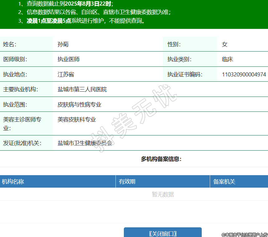 姓名:孫菊性別:女醫(yī)師級(jí)別:執(zhí)業(yè)醫(yī)師執(zhí)業(yè)類別:臨床執(zhí)業(yè)地點(diǎn):江蘇省執(zhí)業(yè)證書(shū)編碼:110320900004974主要執(zhí)業(yè)機(jī)構(gòu):鹽城市第三人民醫(yī)院執(zhí)業(yè)范圍:皮膚病與性病專業(yè)美容主診醫(yī)師專業(yè):美容皮膚科專業(yè)發(fā)證(批準(zhǔn))機(jī)關(guān):鹽城市衛(wèi)生健康委員會(huì) -