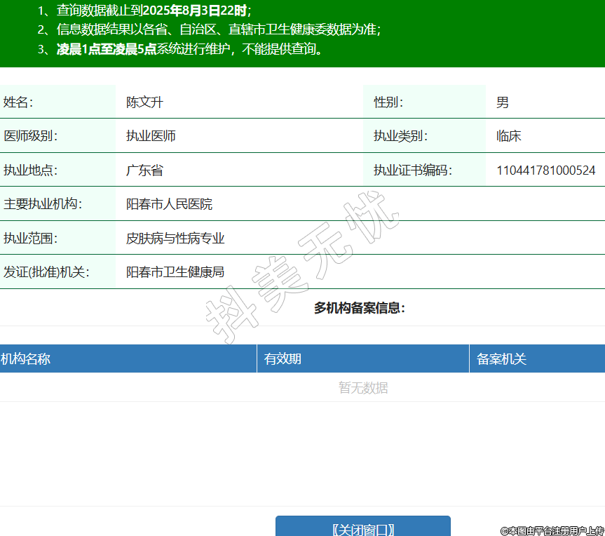 姓名:陳文升性別:男醫(yī)師級(jí)別:執(zhí)業(yè)醫(yī)師執(zhí)業(yè)類(lèi)別:臨床執(zhí)業(yè)地點(diǎn):廣東省執(zhí)業(yè)證書(shū)編碼:110441781000524主要執(zhí)業(yè)機(jī)構(gòu):陽(yáng)春市人民醫(yī)院執(zhí)業(yè)范圍:皮膚病與性病專(zhuān)業(yè)發(fā)證(批準(zhǔn))機(jī)關(guān):陽(yáng)春市衛(wèi)生健康局 -