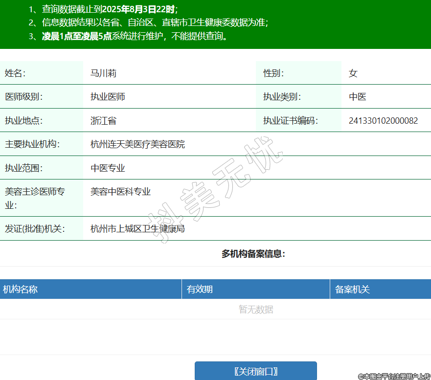 姓名:馬川莉性別:女醫(yī)師級別:執(zhí)業(yè)醫(yī)師執(zhí)業(yè)類別:中醫(yī)執(zhí)業(yè)地點(diǎn):浙江省執(zhí)業(yè)證書編碼:241330102000082主要執(zhí)業(yè)機(jī)構(gòu):杭州連天美醫(yī)療美容醫(yī)院執(zhí)業(yè)范圍:中醫(yī)專業(yè)美容主診醫(yī)師專業(yè):美容中醫(yī)科專業(yè)發(fā)證(批準(zhǔn))機(jī)關(guān):杭州市上城區(qū)衛(wèi)生健康局 -