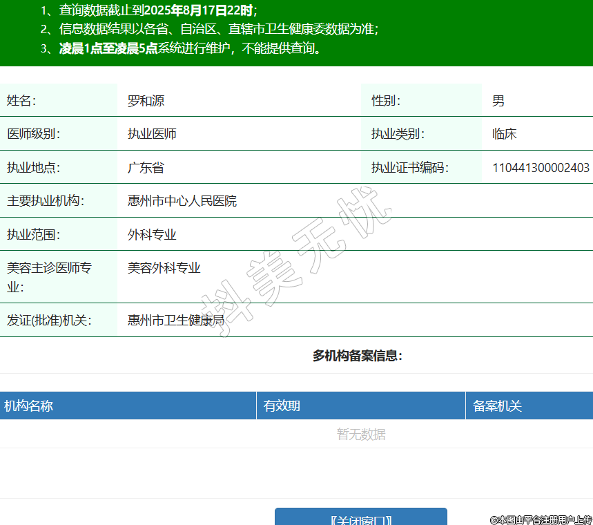 姓名:羅和源性別:男醫(yī)師級(jí)別:執(zhí)業(yè)醫(yī)師執(zhí)業(yè)類別:臨床執(zhí)業(yè)地點(diǎn):廣東省執(zhí)業(yè)證書編碼:110441300002403主要執(zhí)業(yè)機(jī)構(gòu):惠州市中心人民醫(yī)院執(zhí)業(yè)范圍:外科專業(yè)美容主診醫(yī)師專業(yè):美容外科專業(yè)發(fā)證(批準(zhǔn))機(jī)關(guān):惠州市衛(wèi)生健康局 -