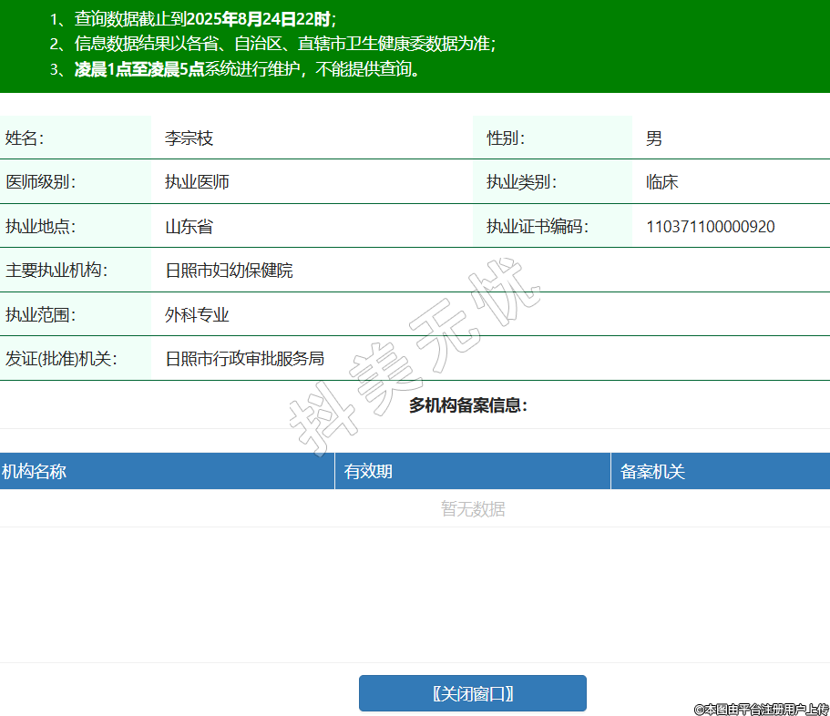 姓名:李宗枝性別:男醫(yī)師級(jí)別:執(zhí)業(yè)醫(yī)師執(zhí)業(yè)類別:臨床執(zhí)業(yè)地點(diǎn):山東省執(zhí)業(yè)證書編碼:110371100000920主要執(zhí)業(yè)機(jī)構(gòu):日照市婦幼保健院執(zhí)業(yè)范圍:外科專業(yè)發(fā)證(批準(zhǔn))機(jī)關(guān):日照市行政審批服務(wù)局 -
